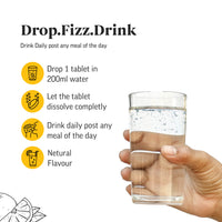 Drop one tab in 250 ml of water, watch it fizz and enjoy! or as directed by a healthcare professional. Do not exceed the recommended intake.