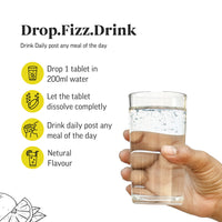 Drop one tab in 250 ml of water, watch it fizz and enjoy! or as directed by a healthcare professional. Do not exceed the recommended intake.