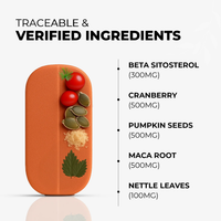 The BioProstate supplement is meticulously formulated to address various aspects of men's health. Beta Sitosterol and nettle leaf contribute to prostate health, while zinc citrate and selenium support hormonal balance and fertility. Cranberry extract and lycopene provide antioxidant protection, enhancing overall vitality. It's a convenient tablet-based supplement for proactive well-being maintenance.