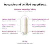 Magnesium Taurate, Magnesium Lactate, Magnesium Malate, Magnesium Bisglycinate, Magnesium Citrate, Magnesium Oxide, Zinc Gluconate, Capsule Shell (Hypromellose).