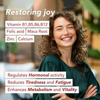 A unique blend combines well-researched botanicals, including Sage leaf, Ashwagandha, and isoflavones Daidzein & Genistein to provide comprehensive support during menopausal symptoms. Enriched with essential B vitamins, Menorava not only helps regulate normal hormonal activity but also reduces the feeling of tiredness and fatigue, ensuring regular formation of blood cells.